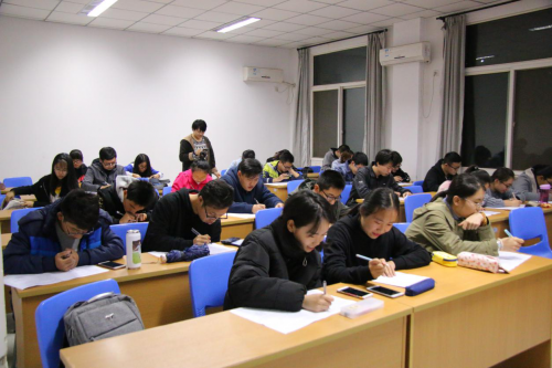 晚上七时许,比赛在主持人介绍了比赛形式与规则后拉开序幕。第一轮笔试将决出比赛的前十名,前五名将进入第二轮的决赛,第六至十名获得三等奖。各参赛选手全神贯注认真答题,井然有序。